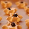 A tészta közepén kivágott háromszögeket ráhajtjuk a töltelékre, és 20 perc alatt ropogósra sütjük.
