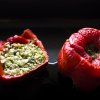 A paradicsomszósz hozzávalóit összemelegítettem, majd a töltelékekre öntöttem. 120 fokos sütőben négy óra alatt sütöttem készre.