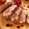 Megfordítjuk a melleket, megkenjük a lekváros keverékkel, beleszúrjuk a húshőmérőt, és addig sütjük, amíg a maghőmérséklete 65 fokos lesz. Ekkor kivesszük, egy rácsra tesszük, újra lekenjük a chilis lekvárral, fóliával letakarjuk, hogy ne hűljön, és még 5 percig így pihentetjük, végül felszeleteljük.
