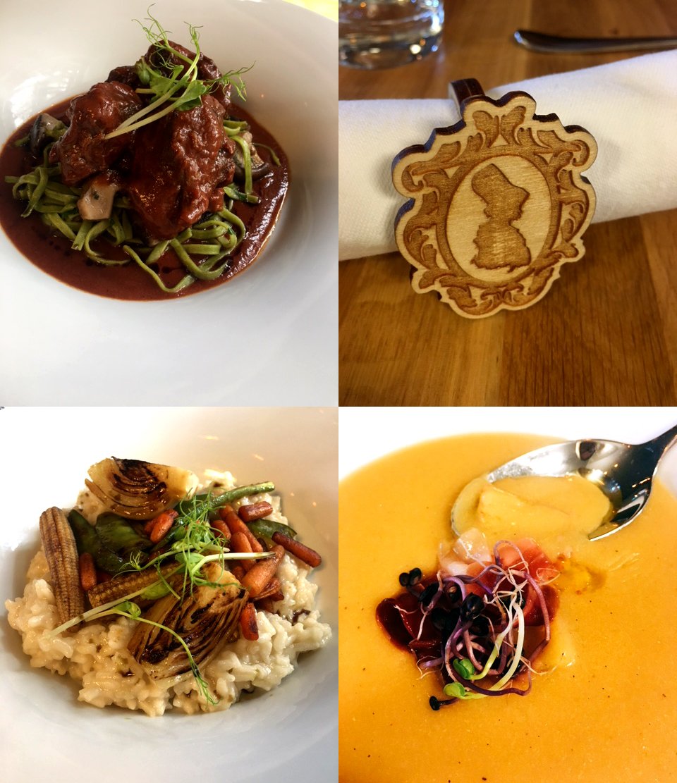 Az igazi meglepetés kakukkszó után érkezett, amikor vacsorázni mentünk. Két menüsor közül lehetett választani, és én nem tudtam ellenállni a kapor, tök, süllő felsorolásnak. ÚRISTEN! Annyira, de annyira jó volt! Előételként egy klassz salátával indítottak, majd érkezett a krémes, könnyű tavaszi tökfőzelék, a tetején tökmagokkal és egy szelet ropogós bőrű, tökéletesre sütött süllővel. A férjem mást rendelt, és ő is el volt ájulva a szuvidált tarjától, de a körettől is. Mondjam tovább? Túrógombóc és másnap madártej…