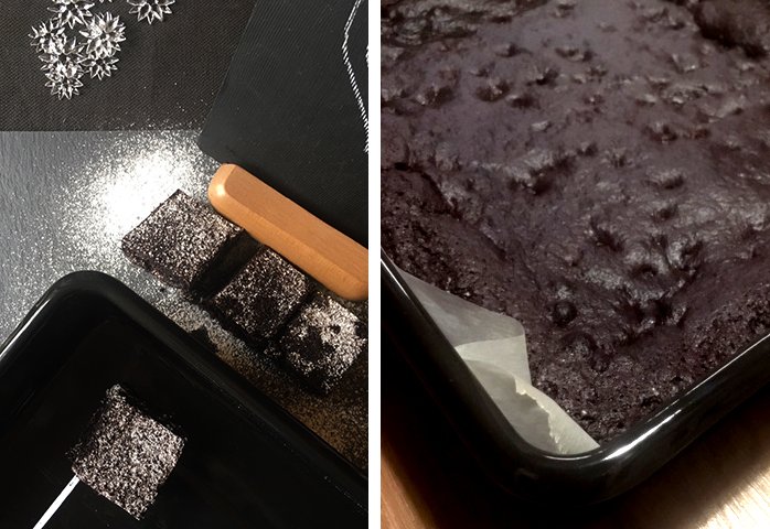Most azért sütöttem egy nagy tepsi brownie-t, méghozzá valódi brownie-tepsiben, mert vettem egy ilyen tepsit végre. Nem, nem azért. Azért, mert vendégeket várok, és a brownie-t tényleg mindenki szereti, kivétel nélkül. A szélét is csak azért vágtam le, hogy még szebb legyen.
