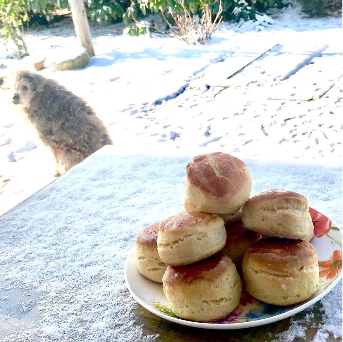 Ezt a pogácsát anyuval közösen sütöttük, Bodri kutyánk legnagyobb örömére. Mióta kezd öregedni a pumink, furcsa szokásokat vesz fel. Például, rajong a pogácsáért. Ez csak azért furcsa, mert az eddig eltelt nyolc év alatt, igencsak önmérsékletet mutatott, ha evésről volt szó, ami különösen a kajafüggő labradorunk mellett volt látványos. A labrador mindent megevett, mégis folyamatosan éhes volt, a pumi meg válogatott, és amit evett, abból is csak módjával lakott jól. Lehet, hogy nem akart elhízni, és most ezt feladja öregségére.
